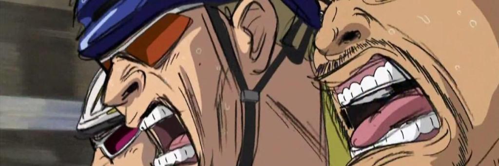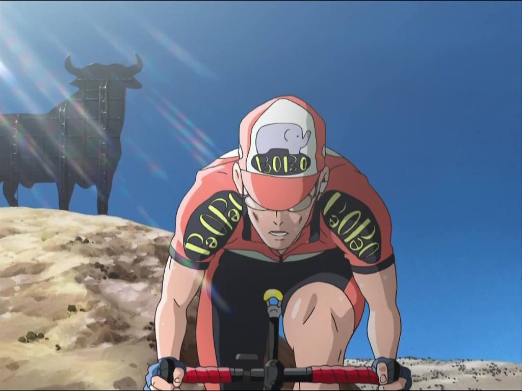 I’ll get to Pepe’s literal brother in a minute, but his relationship to his homeland also feels brotherly. Specifically in the way of “I can trash talk this, but you can’t.” The sweltering heat, cracked earth, and endless, shadeless stretches of road. They mean something more to Pepe than to the other cyclists, for who this is just a particularly miserable location to race through. My husband told me that it used to be not-uncommon in these long haul races for athletes to let a nonthreatening competitor win the day’s stage if it went through their hometown. This is not being afforded to Pepe. Not only has he been coached to help Gilmore win at any cost, but he accidentally hears a radio transmission from his sponsors that they are thinking of firing him after this race. Pepe is a taciturn and understated character, so even being overlooked and humiliated on his own turf doesn’t spark some great reaction or shonen rallying cry.